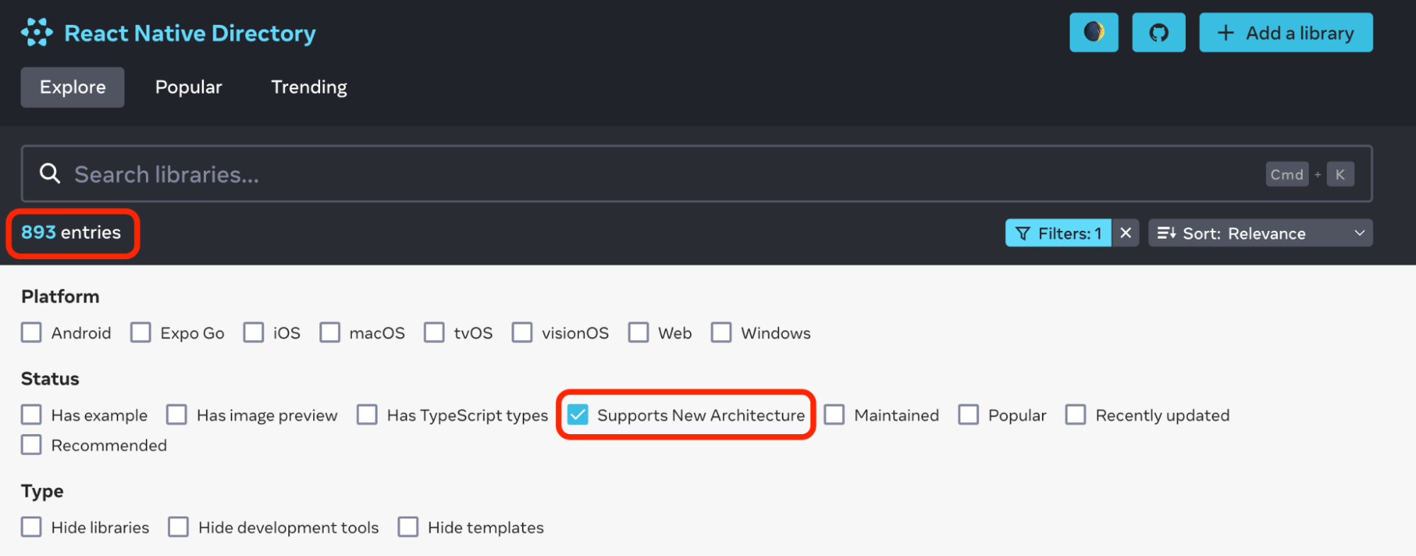 We've collaborated with the most popular React Native libraries to ensure support for the New Architecture. You can check library compatibility with the New Architecture on the reactnative.directory website.